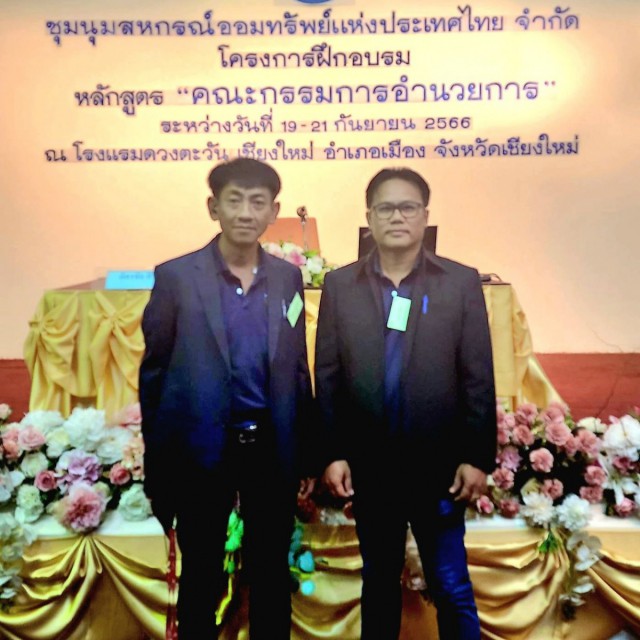 วันที่ 19-21 ก.ย.66 นายมานะ โกทัน และ นายอลงกร จินดาทิพย์ รองประธานกรรมการดำเนินการ คนที่ 1 และ คนที่ 2 ตามลำดับ ได้เข้ารับการฝึกอบรมหลักสูตร "คณะกรรมการอำนวยการ" ณ โรงแรมดวงตะวัน อ.เมือง จ.เชียงใหม่ โดยได้รับการสนับสนุน ค่าลงทะเบียนเข้ารับการอบรม ค่าที่พัก และค่าเดินทาง จากชุมนุมสหกรณ์ออมทรัพย์แห่งประเทศไทย จำกัด ซึ่งสหกรณ์ออมทรัพย์กลุ่มเกษตรไทย จำกัด เป็นสหกรณ์สมาชิก